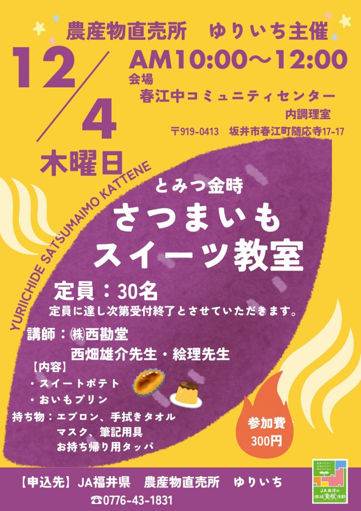 今回は秋の味覚「さつまいも」を使用したスイートポテトとプリンです。